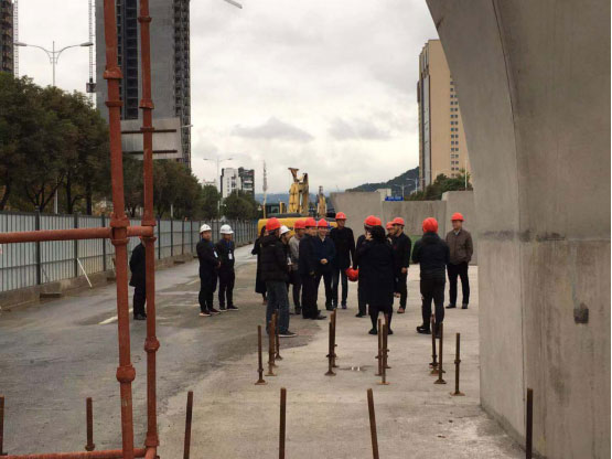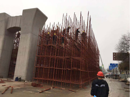 本項目全長1204.559m,其中橋梁全長684m,上跨武陵山大道節(jié)點274m,(4跨:55m+82m+82m+55m),為變高度全鋼箱梁;上跨天崇路節(jié)點橋梁110m(3跨:30m+50m+30m),為變高度預應力混凝土連續(xù)梁;西側引橋長300m(10跨:10×30m),為等高度預應力混凝土連續(xù)梁。子午橫斷面為50m,橋梁橫斷面為17.5m,該道路為城市主干道,雙向8車道,設計車速50km/h,橋梁使用年限100年,車行道采用瀝青混凝土路面,設計合理使用年限15年。
